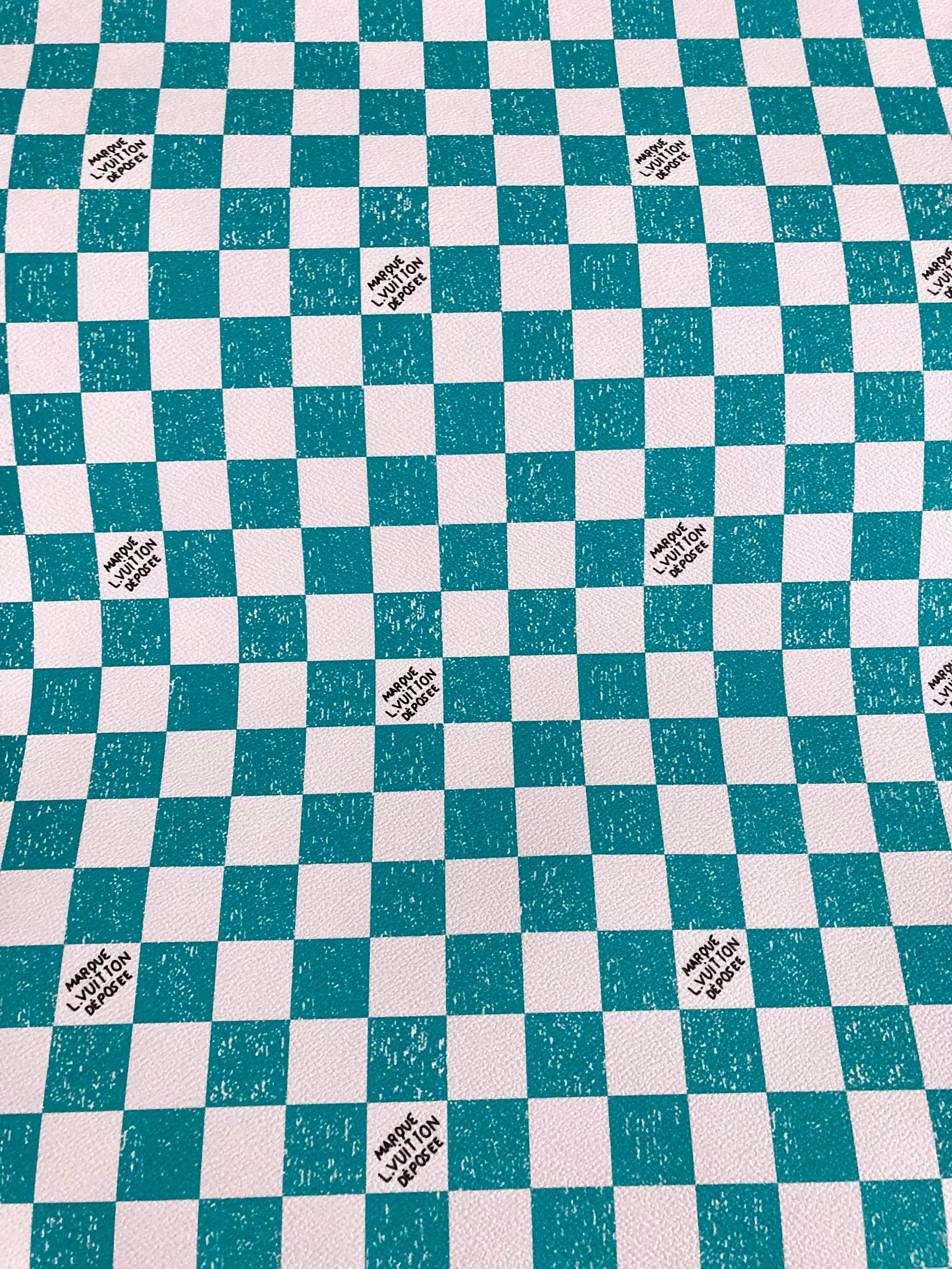 Aqua Green Handwriting LV Louis Vuitton Vinyl Faux Leather Designer Fabric for Bag