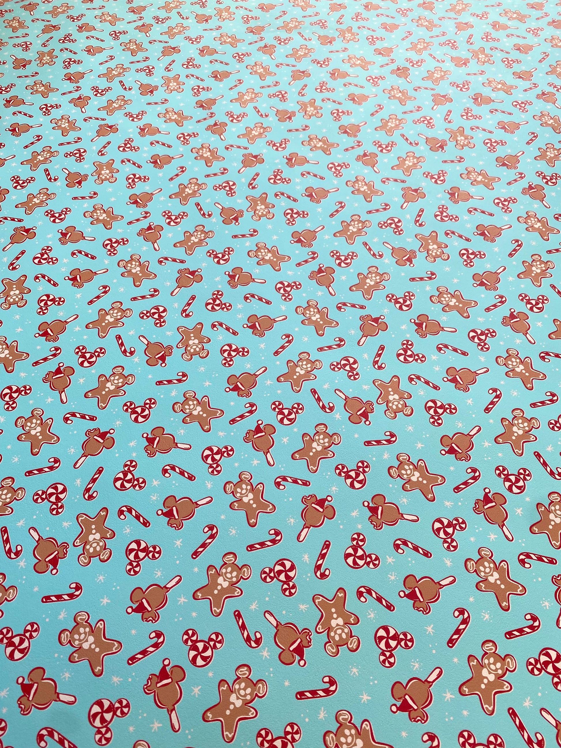Christmas Gingerbread Man Cartoon Faux Leather Vinyl Fabric for Handmade Bag Making