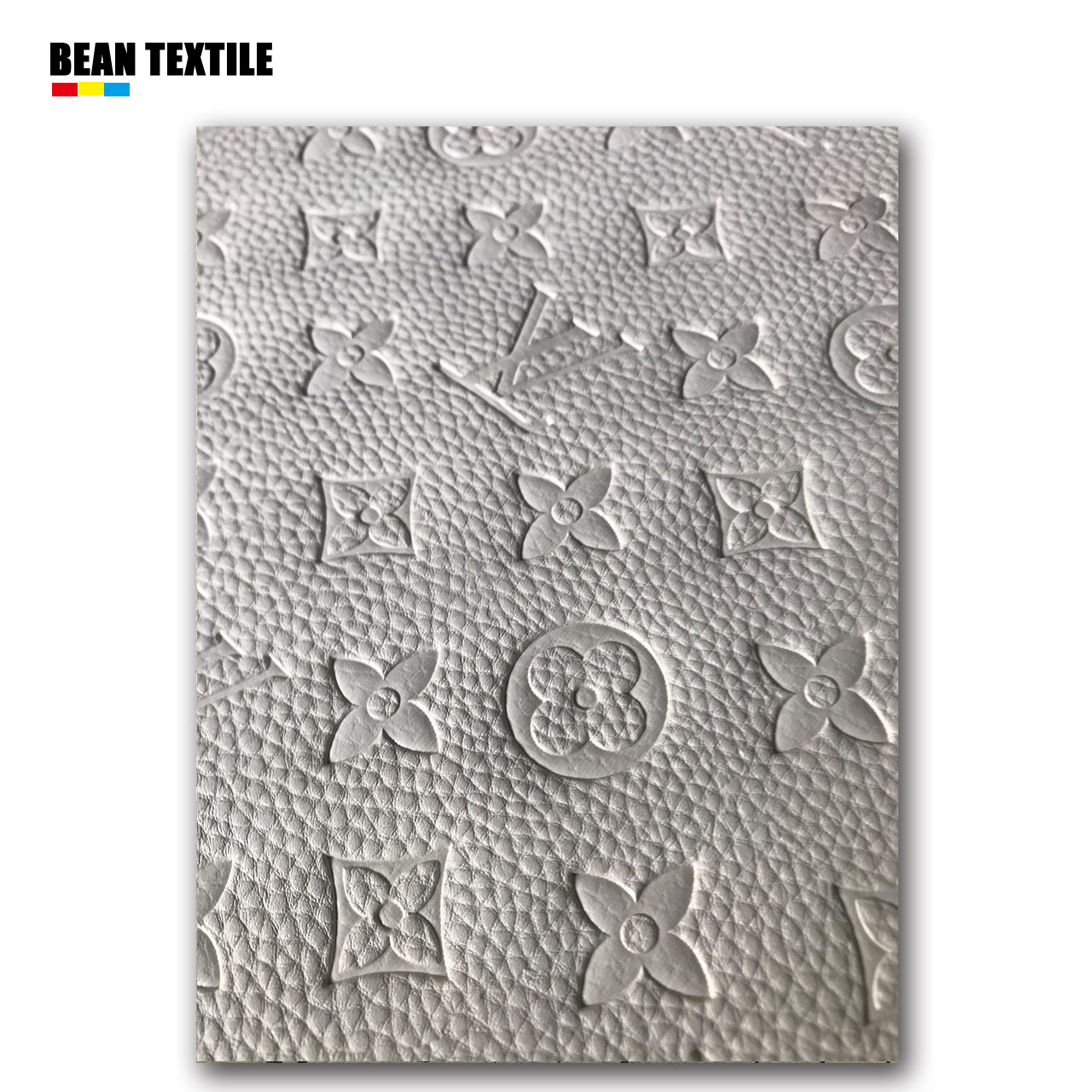 White embossed Louis Vuitton Faux leather fabric by yard car upholstery