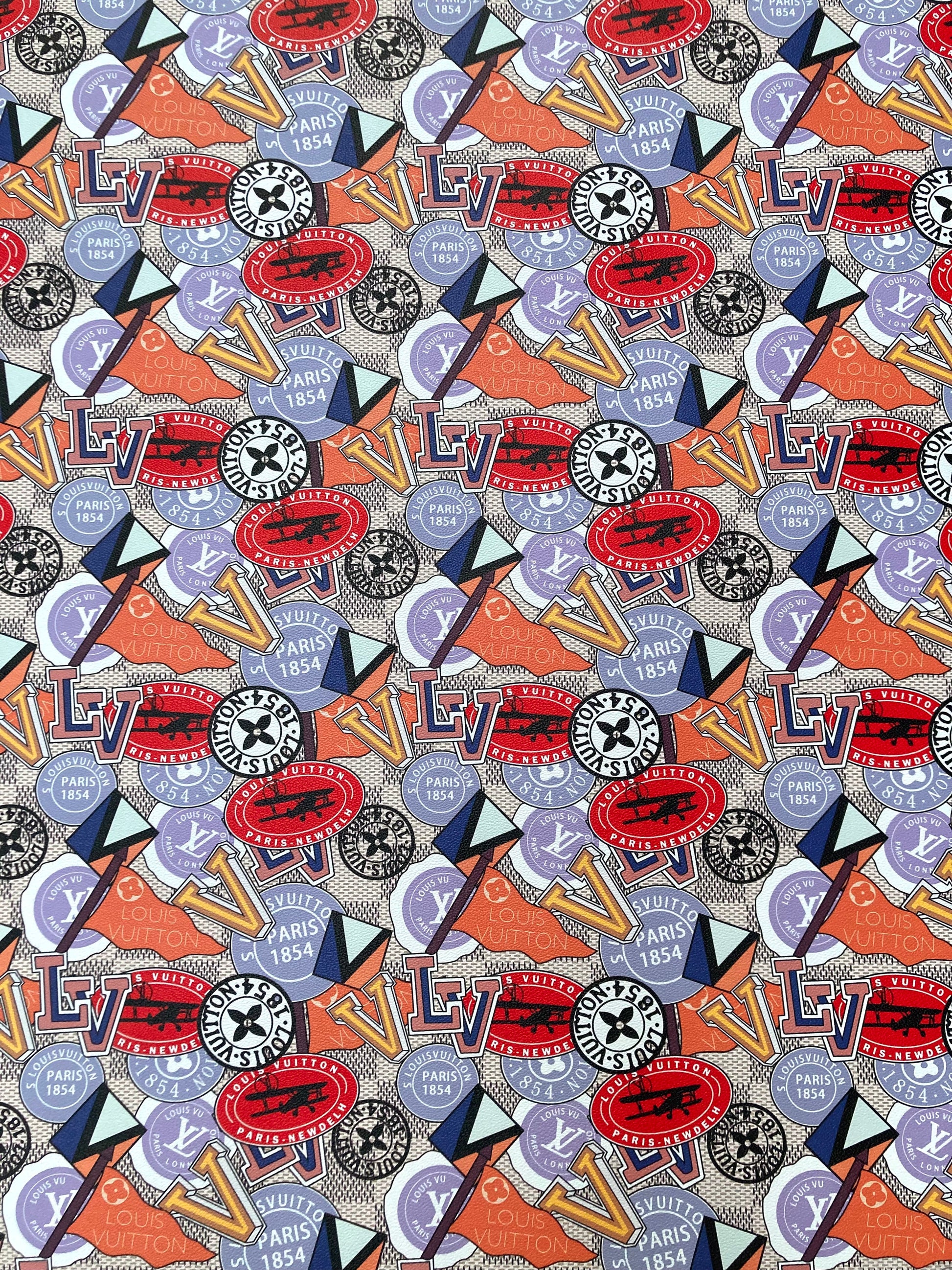 Custom Leather Handcraft Material Vintage LV Pattern Vinyl Fabric for Bag Sneakers
