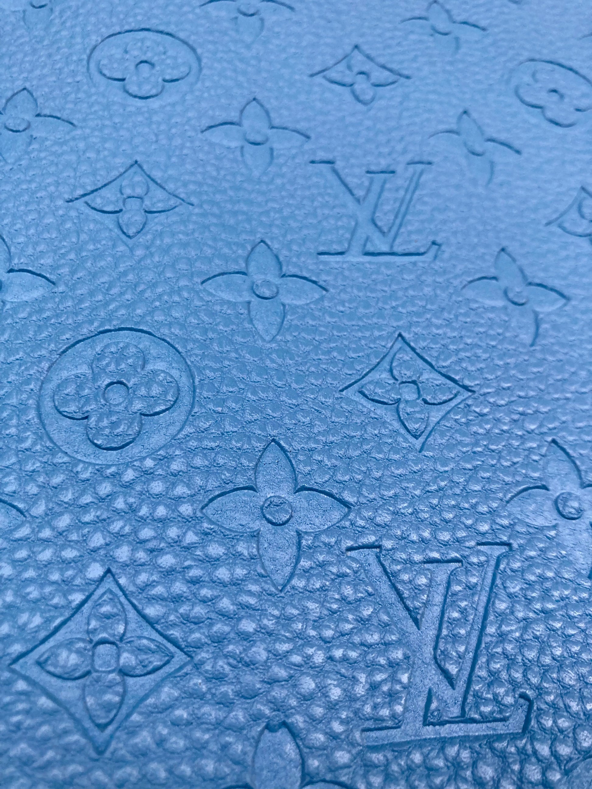 Handmade Baby Blue Embossed LV Leather Fabric for Custom Crafts Upholstery