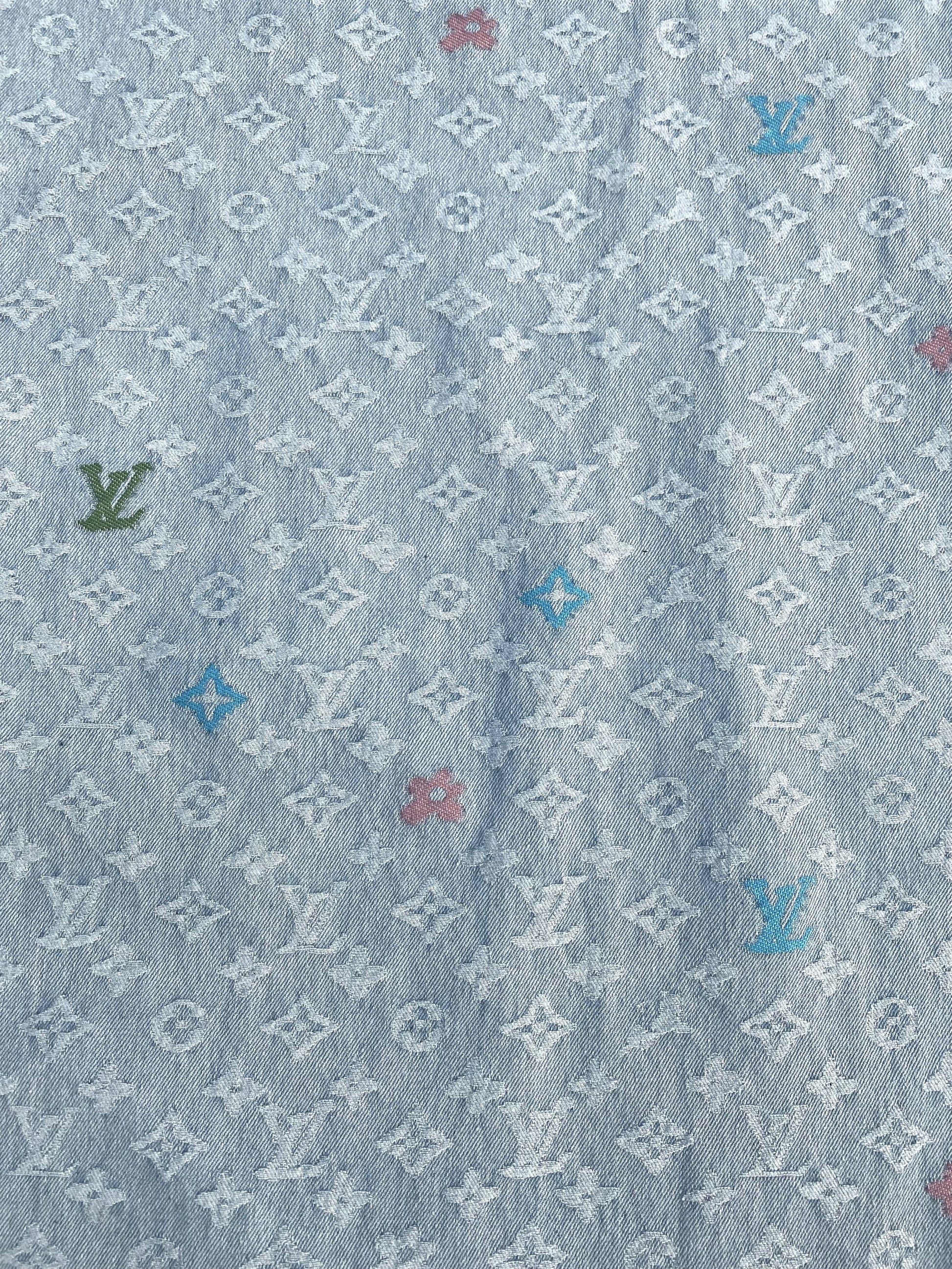 Light LV Louis Vuitton Denim Fabric Sold by Yard for Custom Handmade Jeans DIY.