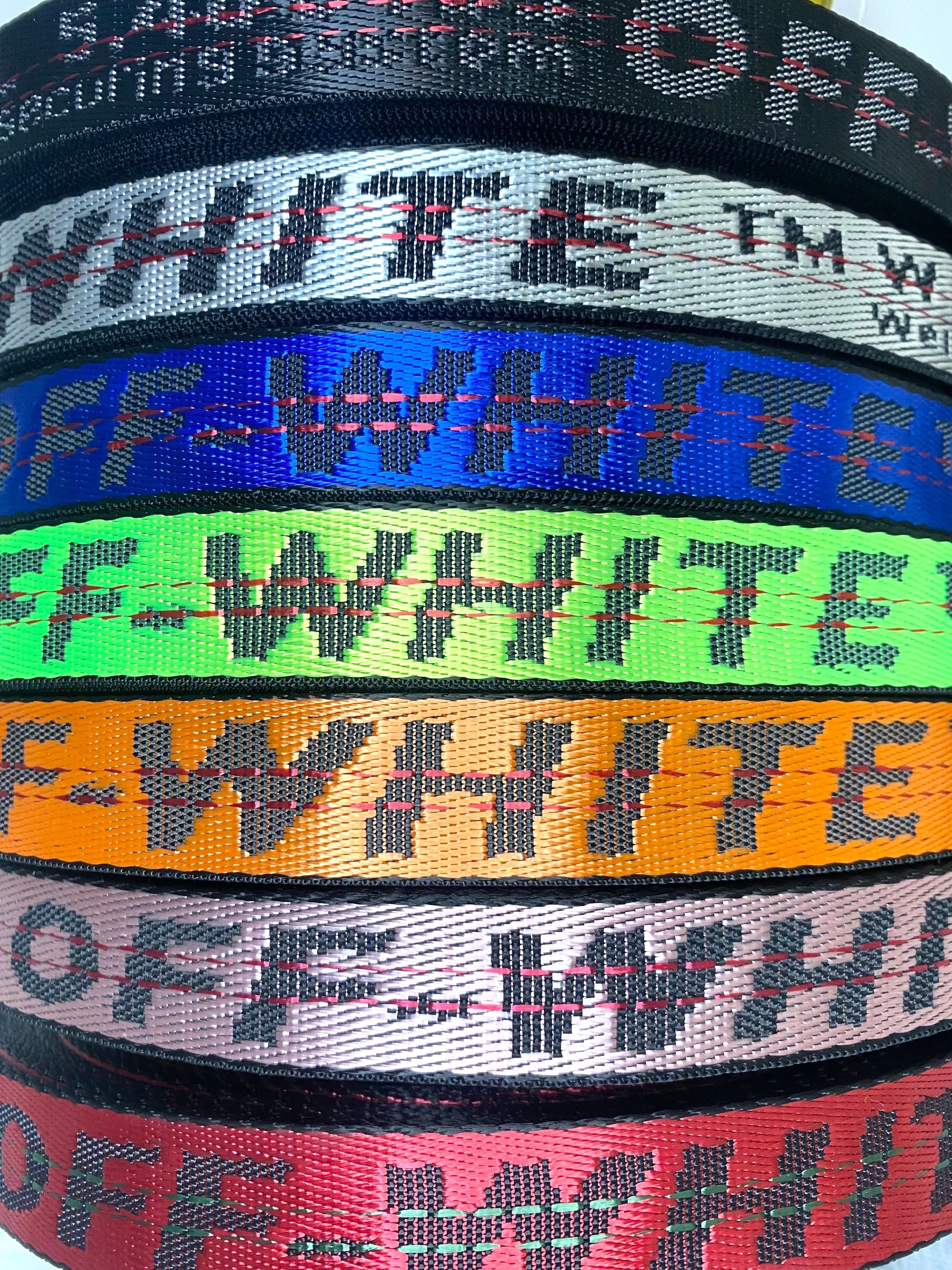 Colorful Off-White Strap sold by yard.